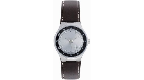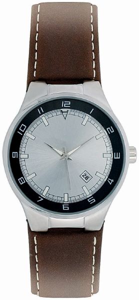Cienna Gents. 3 Hand Japanese movement with date. case dimension : 41.13 mm. Printing diameter : 21.45 mm. Brass case in shiny chrome finish. 3 ATM water resistant. 24 mm brown padded leather strap. Supplied in a black suede pouch.