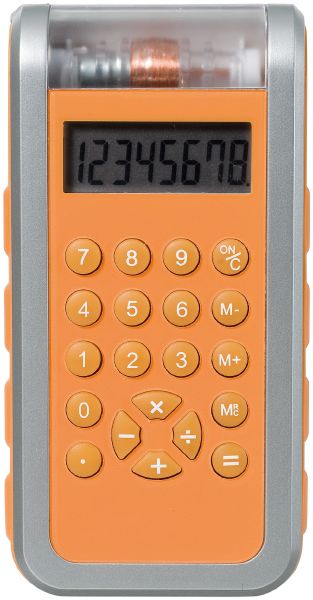 Dynamo Calculator. Ecologically friendly 8 digit calculator. Shake it for 20 seconds and it calculates for around 5 minutes.