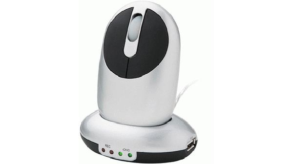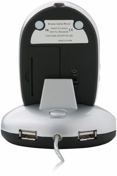 Wireless Mouse With Hub. Rechargeable wireless optical mouse with 4 port hub in recharging unit, powered by USB.