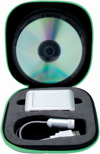 Glacier Data Set. EVA CD pouch for 12 CD's, Glacier laptop light and Glacier USB hub.
