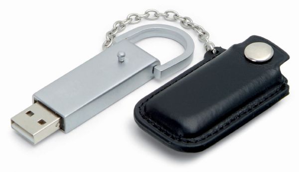 Corner Office Memory Stick. 256 MB version 2.0. Aluminium memory stick in leather pouch.