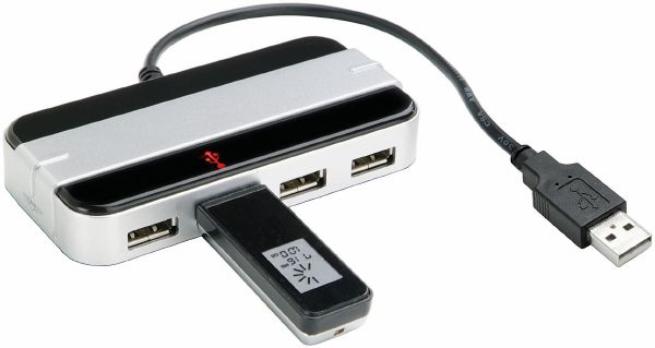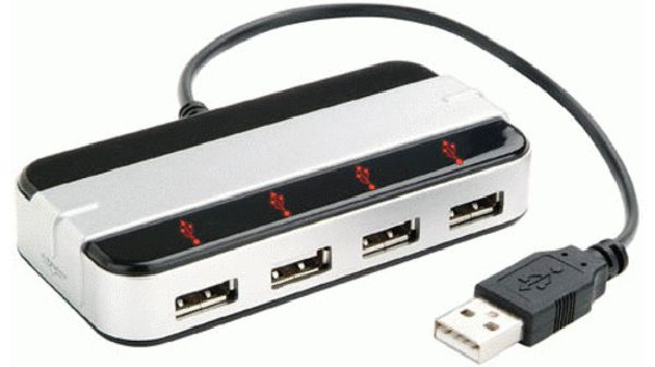 | Features : | Nice design 4 ports USB 2.0 hub with red illuminating symbols on top. |