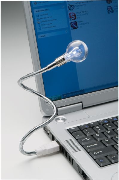 | Features : | Light bulb design laptop light with 30 cm flexible connecting tube. |