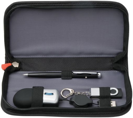 Zero Computer Set. A laser pointer with pen, mini computer mouse and 1GB memory stick