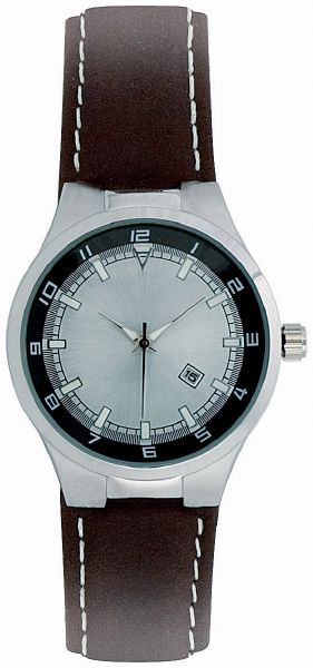 Cienna Ladies. 3 Hand Japanese movement with date. Case dimension : 33.23 mm. Printing diameter : 17 mm. Brass case in shiny chrome finish. 3 ATM water resistant. 20 mm brown padded leather strap. Supplied in a black suede pouch.