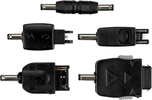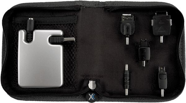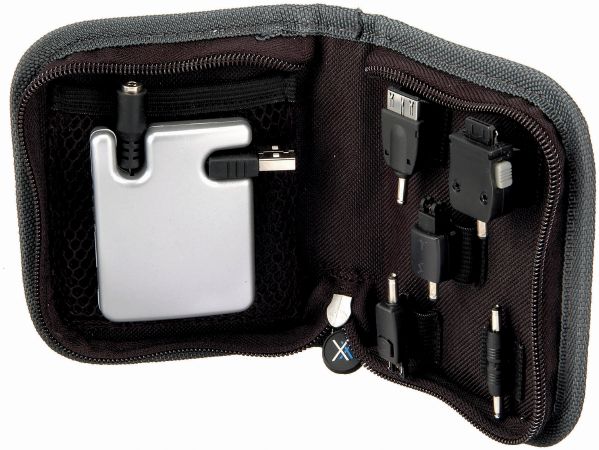 | Features : | Extendable charging device, 5 charger plugs and transformer to charge your mobile phone via the output power of the USB port. Charges most of current mobile phones. Including 600D polyester pouch. |