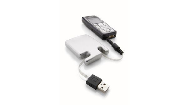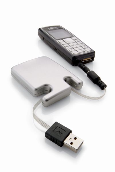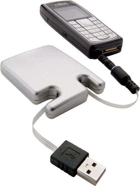 USB Mobile Phone Charger. Extendable charging device, 5 charger plugs and transformer to charge your mobile phone via the output power of the USB port. Charges most models of Nokia, Sony Ericsson, Siemens, Samsung and Motorola mobile phones. Including 600D polyester pouch.