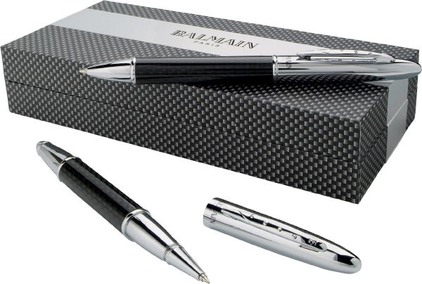 Balmain St. Moritz Carbon Pen Set. Ballpoint and roller ball with carbon fibre finishing. Carbon fibre.