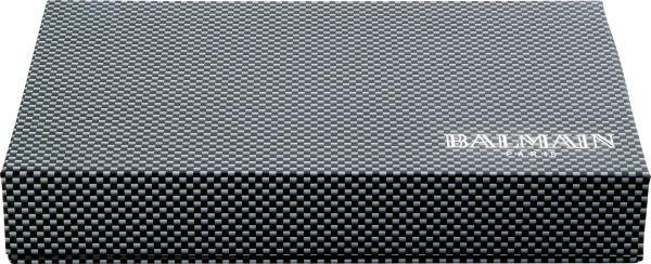 Balmain Tignes Gift Set. Ballpoint and business card holder with carbon fibre style finish. In box. Carbon fibre.