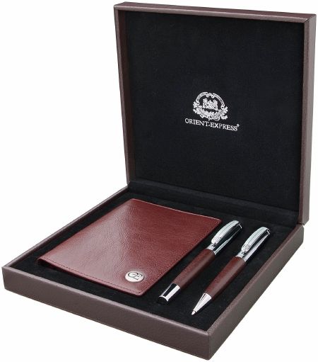 | Features : | Leather wrapped ballpoint / rollerball and wallet in luxury giftbox. |