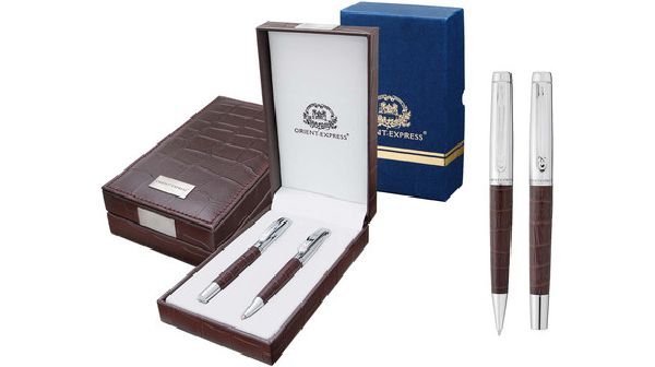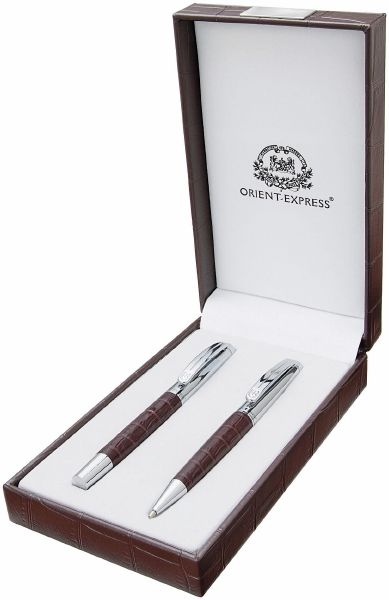 | Features : | Ballpoint and rollerball in very nice crocodile imitation leather pouch. |