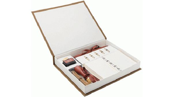 Calligraphy Set And Seal Set. This calligraphy set comprises of envelopes, writing paper, seal stamp, ink and a fountain with a choice of nibs, all supplied in gift box.