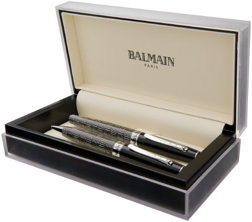 Balmain Aquitaine Pen Set. Ballpoint / roller ball in a fashion frosted gift box.