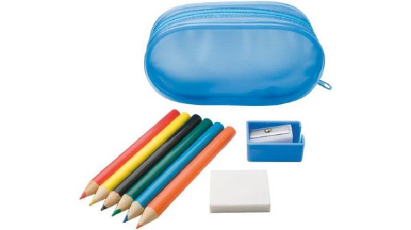 | Features : | 6 pcs colored pencils with sharpener and eraser in pouch. |