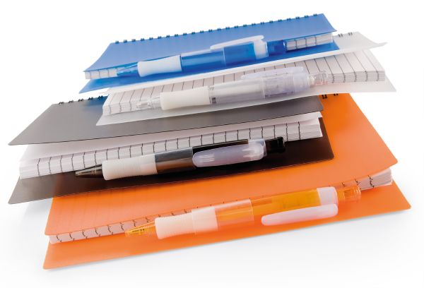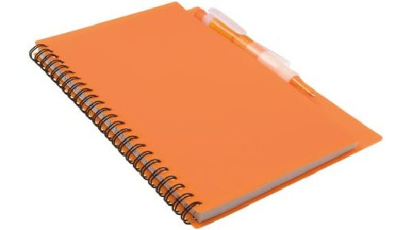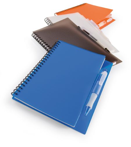 Notebook. Notebook includes a matching colour ballpoint pen.