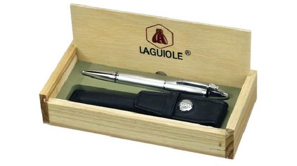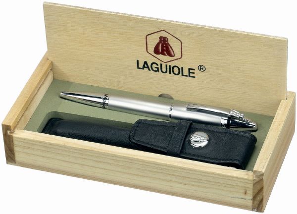 Laguiole Pen. Ballpoint in pouch and wooden box. Metal.