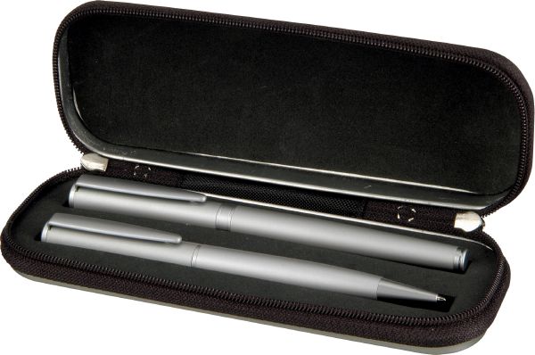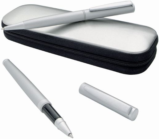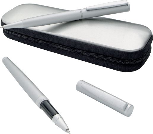 Verona Pen Set. Roller ball / ballpoint pens in zipped gift box. Metal.