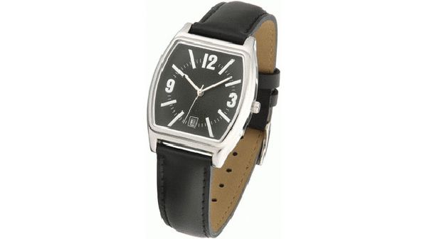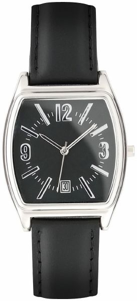 | Material : | Stainless steel case with black dial. 3 ATM water resistant. 18 mm black padded leather strap. Supplied in a black suede pouch. |