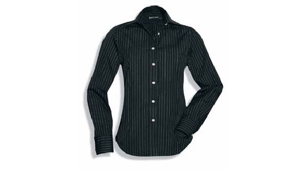 Ladies' Striped Blouse. Form-fitted with pearl buttons and "Easy care" treatment. Finely woven poplin fabric of 100% combed cotton. 130 g/m²