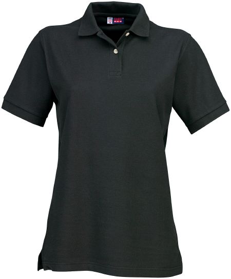 Ladies' Boston Polo Basic. Form-fitted. 1 x 1 Flat knit rib collar and cuffs. 2 Button placket with embossed horn buttons and neck tape, also has side slits. Piqué knit of 100% combed Cotton. 180 g/m²