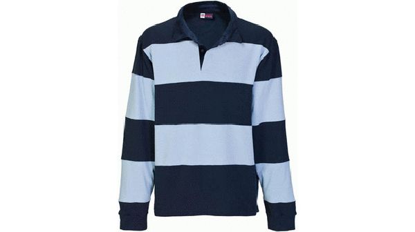 Zerega Striped Rugby Shirt. Twill fabric collar and placket. Hidden placket with 3 rubber buttons and side slits. Heavy jersey knit of 100% Cotton. 270 g/m²