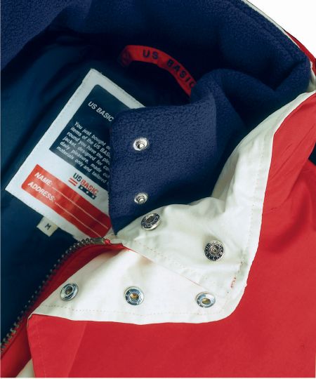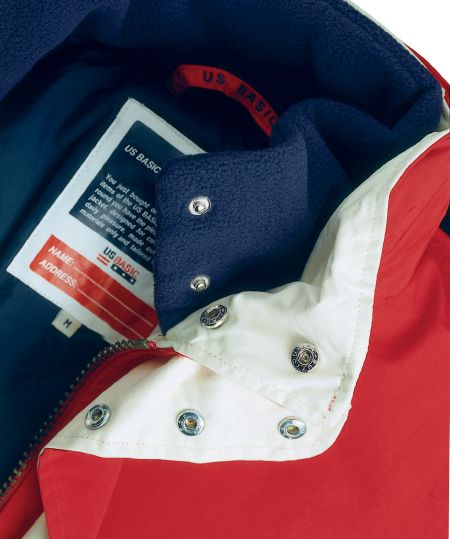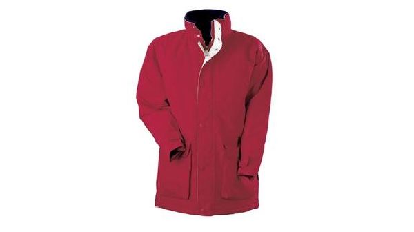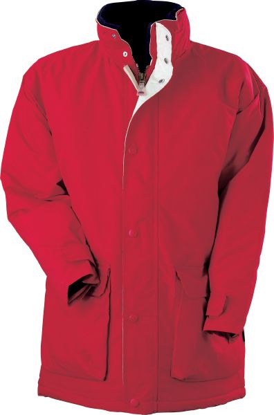 Arctic Parka / Winter. Water resistant. Double placket with press buttons to cover the main zipper. Foldaway hood in collar and pockets with flap and velcro closure. Cuffs with adjustable velcro closure and flag label. Fleece lining inside collar and opening in the lining for access to the print and embroidery areas and writable main label with area for name and address. Hanging loop and one inside pocket with a mobile phone pocket. Outer fabric of 100% Polyamide. Lining of 100% finely woven Nylon and 100% Polyester mesh lining. With Padding.