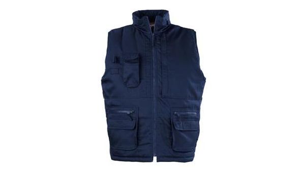 Body Warmer Free. Double pockets at the front, two with zipper and two with flap and Welcro fastening. Mobile phone pocket. Chest pocket with zipper and pen holder. Foldaway hood in collar. Fabric of 65% Polyester and 35% Cotton. Lining of 100% Polyester Taffeta.