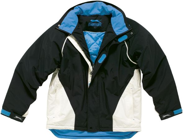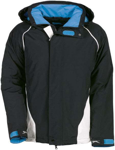 Action Jacket. Jacket is windproof and waterproof (1000 WP). With detachable hood. Embroidery of Slazenger logo on the backside and with inside pockets. Fabric of 100% Nylon Taslon with full dull effect and PU coating. Padding of 100% Polyester.