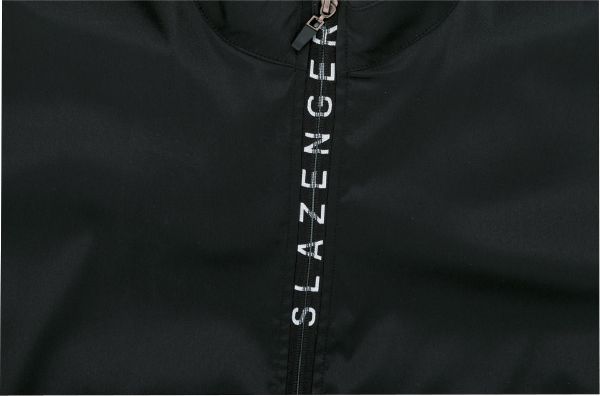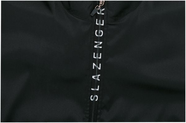 Technical Tracksuit. Jacket: In-weaving Slazenger wording on zipper tape. Mesh cut en sew at sleeve and at side panels. Pockets with zippers and chin cover. Hanging loop. Pants: Elastic and drawstring at waistband with mesh details at leg. Outer fabric of 70% Polyester, 27% Nylon and 3% Spandex. Jacket lining of 100% Polyester mesh.