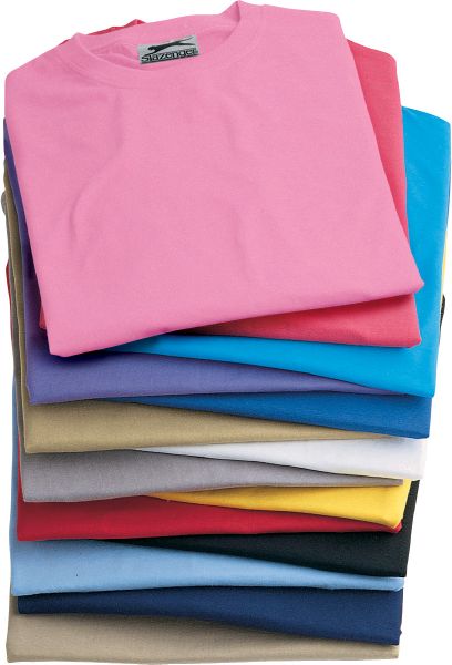 Ladies' T-Shirt. Rib knit collar with Elasthane and shoulder to shoulder tape. Single jersey knit of 100% Cotton. 150 g/m²