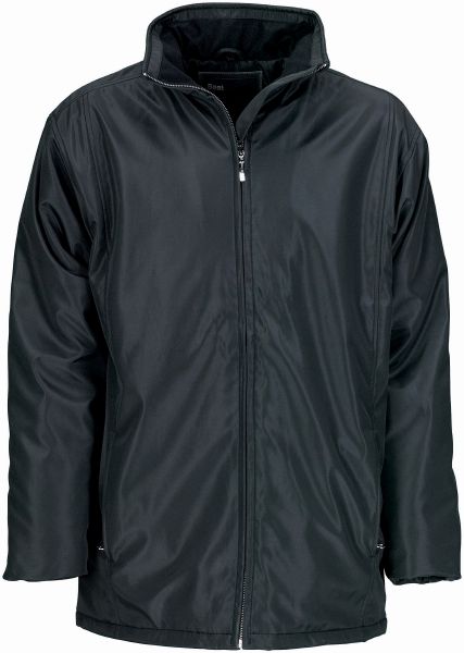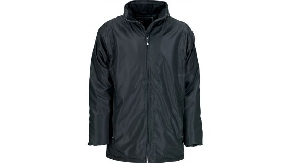 Business Jacket. Jacket is long enough to cover a blazer. Fabric is windproof, waterproof and breathable. YKK® zipper. Front pockets and cuffs with press button fastening and inside chest pocket with zipper and inside mobile phone pocket. Opening in the lining for access to the print and embroidery areas. Outershell of 100% Polyester microfiber bonded with 100% Polyester single jersey. Lining of 100% Polyester Taffeta. Padding of 100% Polyester.