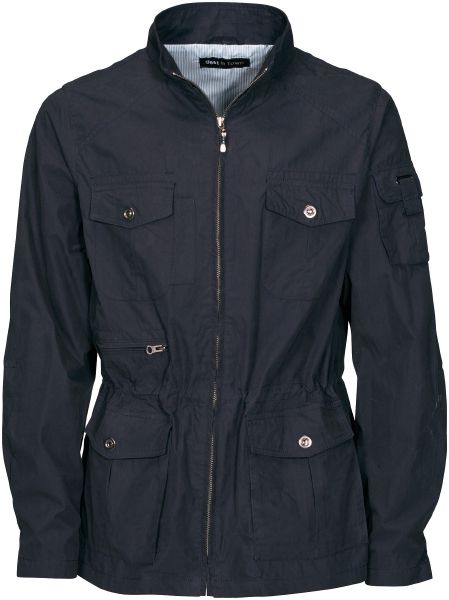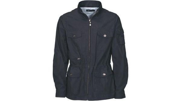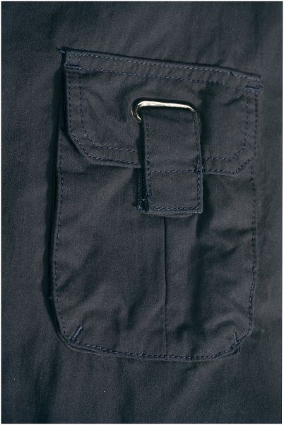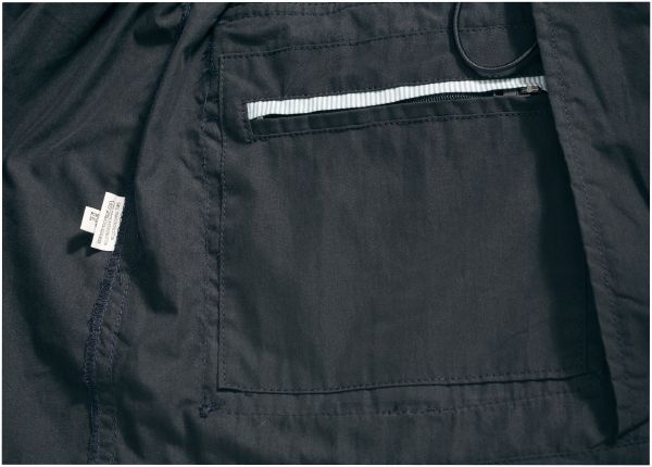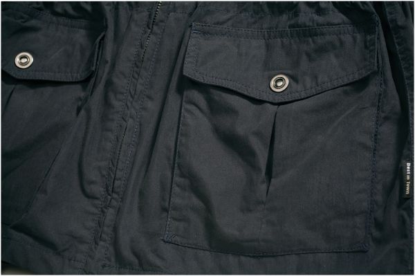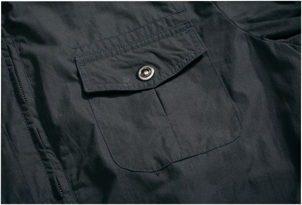 City Jacket. YKK zipper. Front and chest pockets with snap buttons. Sleeve pocket and drawstring with cord stopper on the waist. Cuffs with adjustable button closure and several inner pockets with hanging loop. Fabric of 70% Cotton and 30% Nylon. Half lining of 65% Polyester and 35% Cotton.