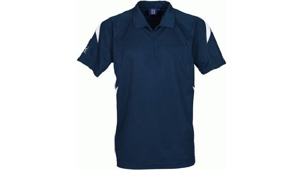Slice Zip Polo. Self fabric collar and zip closure with contrast coloured neck tape. PGA print on the sleeve. Warp knit of 100% Polyester Cool Fit. 155 g/m²