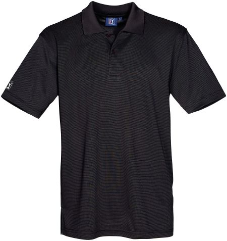 Ace Jacquard Polo With Bamboo. 2 Button placket with embossed buttons and 1 x 1 flat knit rib collar. Neck tape and side slits. PGA Tour print on the sleeve. 2-Tone fabric of 65% Polyester and 35% Rayon Nanbon with anti-snagging finish. 170 g/m²