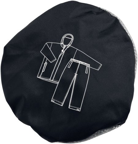 Green Rain Suit With Pouch. Taped seams. Jacket: Hood foldable into collar and elastic cord with cord stoppers on the bottom. Elasticated cuffs and front pockets with zipper. PGA Tour rubber badge on pocket. Pants: elasticated waistband with elastic cord with cord stoppers. Leg opening with adjustable velcro closure. Pocket entrances and PGA Tour print above velcro. Including pouch of 100% Polyester mesh. Fabric 100% Nylon with PU coating.