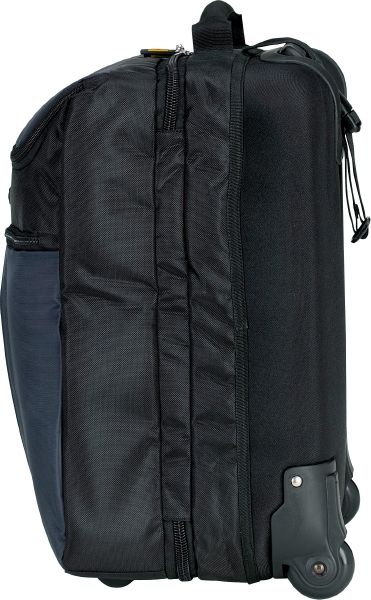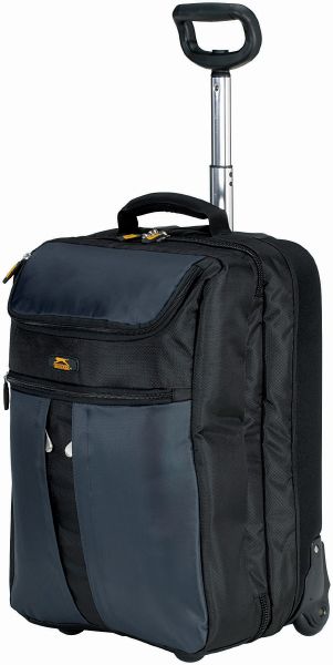 Slazenger Trolley Bag On Wheels. With front zipper pocket to put travel accessories. 2 big main compartments with mesh divider. 420D Nylon with 1680D polyester.