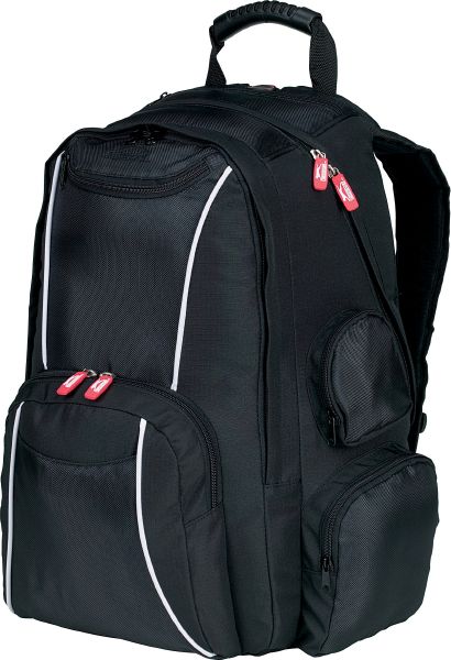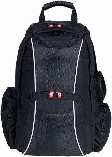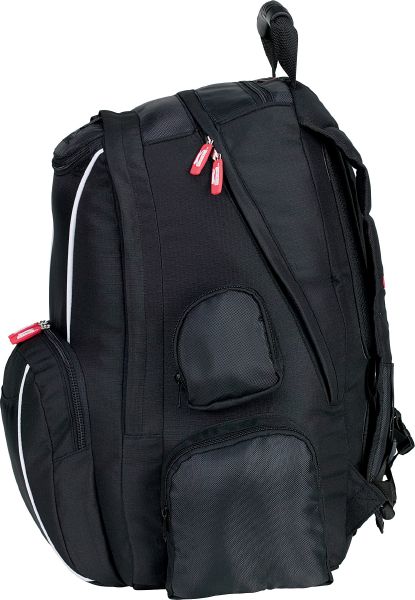 Slazenger Backpack. High end sportive rucksack with several functional pockets, including a small pocket to store your music player. 1680 / 300D.