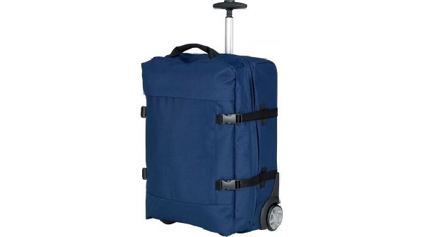 Sportive Airporter. Airporter with aluminium wheels and trolley system. Large inside compartments for clothes and outside pocket for passport, pens etc. 600D Polyester.