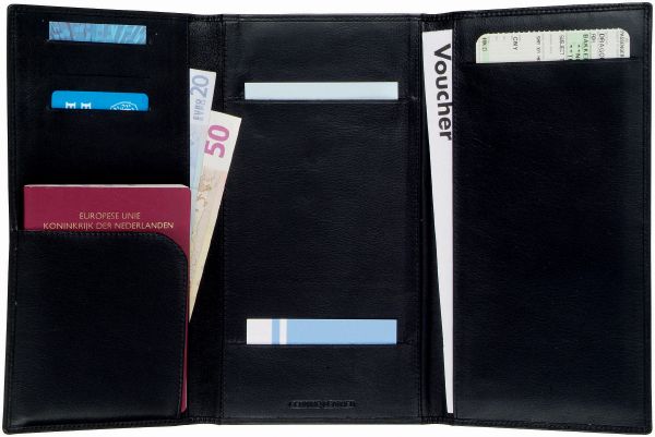 Travel Wallet. Give travelelrs a peace of mind by allowing them to keep all their essentials in one easy-to-carry wallet. Includes pockets for passports too. Nappa Leather.