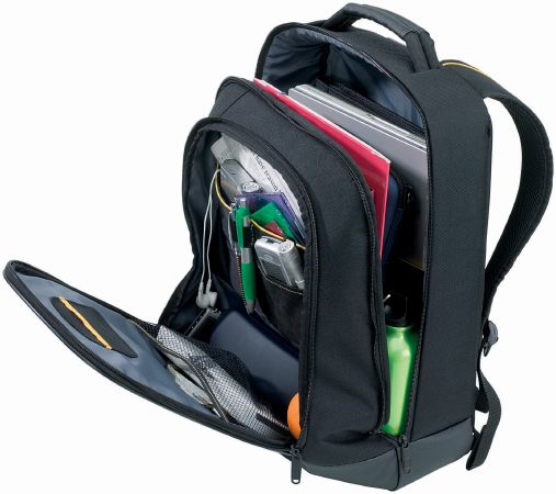 Laptop Rucksack. Padded compartment for laptop and several pockets for accessories. Polyester.