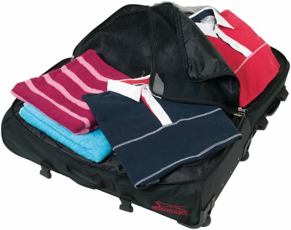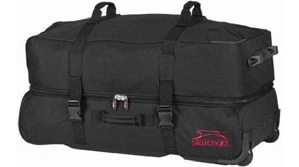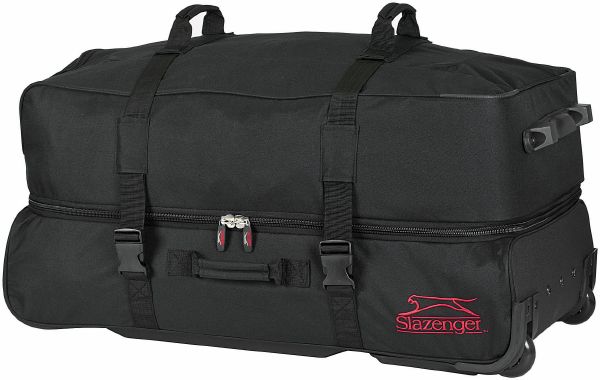 Slazenger Big Travel Bag. This nice big travel bag with trolley system has 2 big separate compartments and 2 zipper pockets for easy access for documents and accessories. 600D Polyester.
