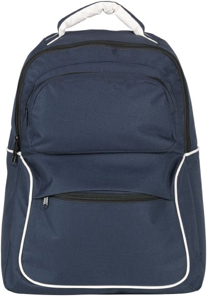 Toronto Rucksack. Functional rucksack with 2 big front pockets and small zipper pocket inside the main compartment. 600D polyester.