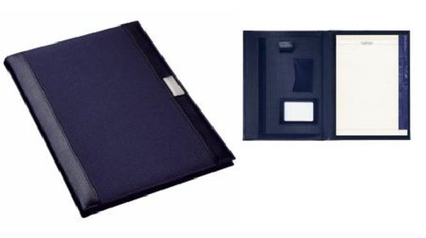 Blue Tone A4 Portfolio. PU portfolio with 20 page memo pad, pen loops and card holder flap for documents. 600D.