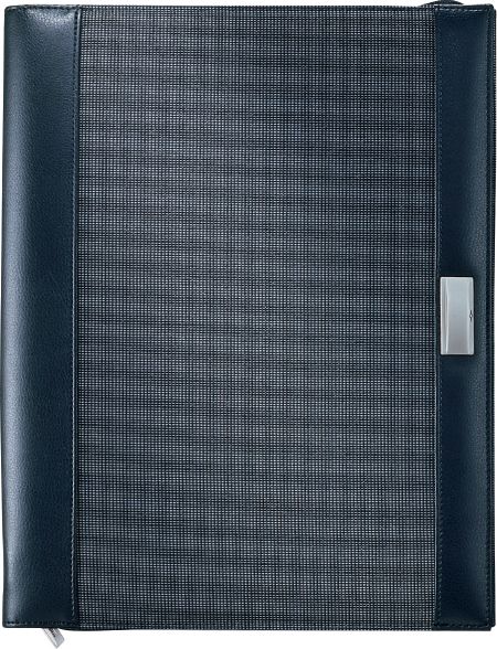Blue Tone A4 Zipper Portfolio. PU portfolio with 20 page memo pad, pen loops and card holder flap for documents. 600D.