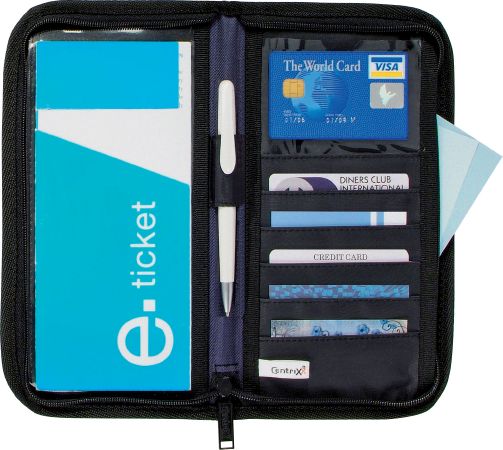 Travel Wallet. Give travellers a solution to store their passport and some extra pockets to store your credit cards and your boarding pass. 600D.