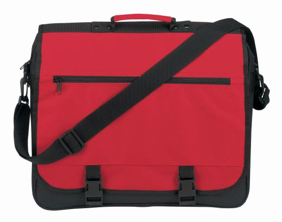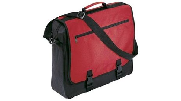 Exhibition Bag. This bag has a adjustable shoulder strap. Includes pen holders and business card holder and a zipper front pocket. 600D.