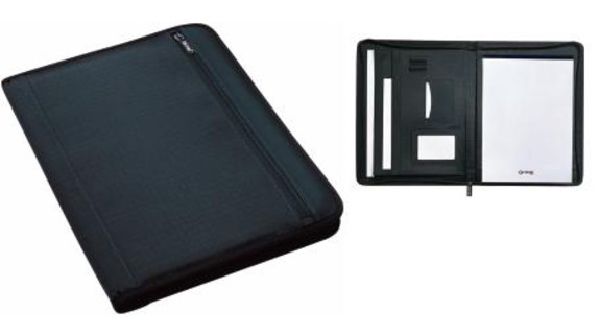 A4 Zipper Portfolio. Portfolio with zipper closure includes note block and several pockets to hold your documents. 420D Ribstop.