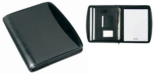 Zipper Portfolio Deluxe. Portfolio with zipper closure, includes note block, ring binder and several pockets to hold your documents. 840D.