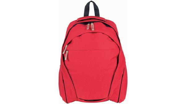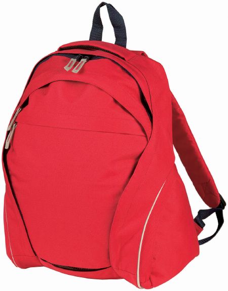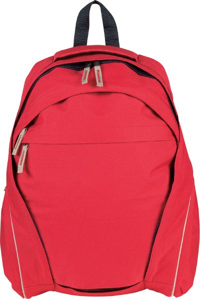 Calgary Rucksack. Sportive rucksack with adjustable padded shoulder straps and front zipper pocket. 600D Polyester.