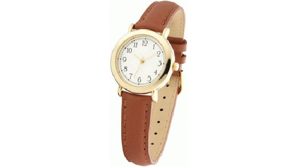 | Material : | Metal case with shiny chrome finish. 14 mm brown padded leather strap. |